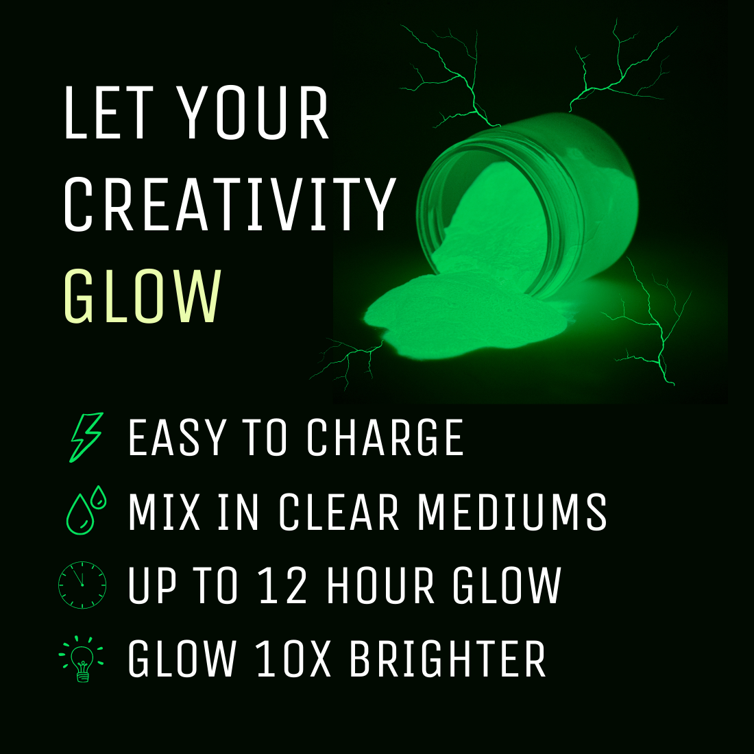 It is important to note though that any true white glow pigment is made up of a mixture of different colors of glow pigments, which when viewed together yield white. It's the same principle as the RGB pixels on your TV that when combined make white light. For this reason, if your white glow paint is not fully charged, you may see a faint green or blue glow since these colors emit a much lower wavelength and don’t require much of a charge to see them glow.